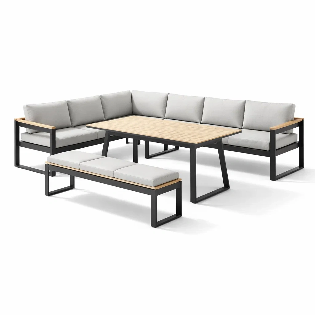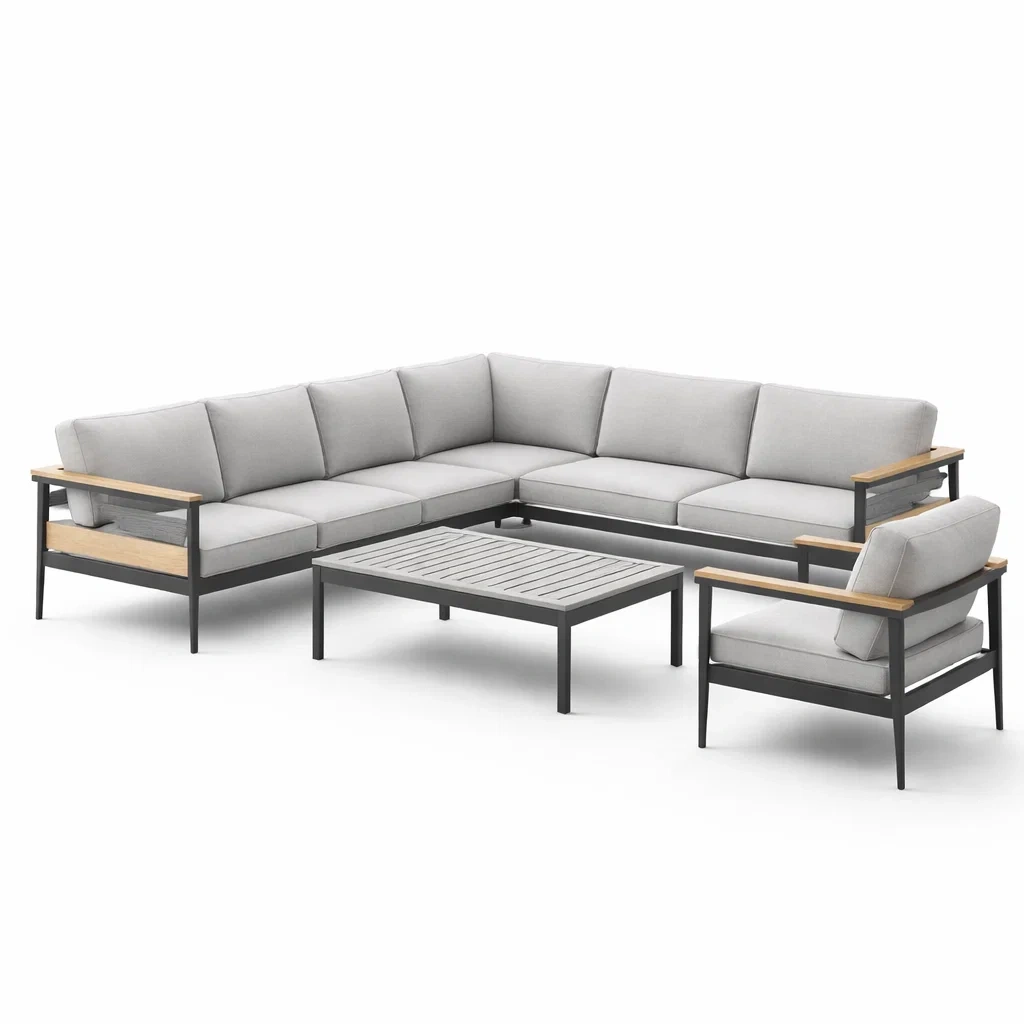 Ensemble de canapés de salon extérieur en aluminium et bois d'acacia gris€135,21