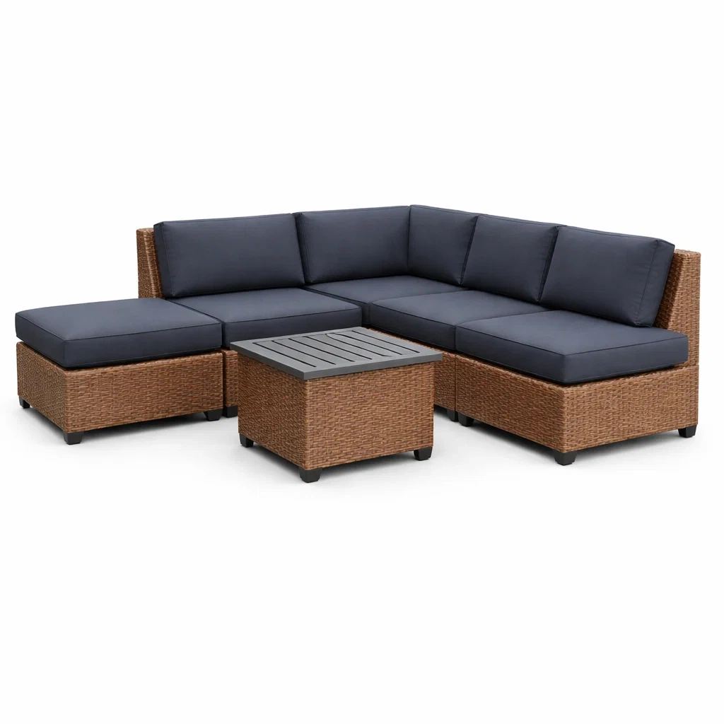 Ensemble de canapés modulaires de jardin en osier synthétique marron coussins bleu marine€135,95