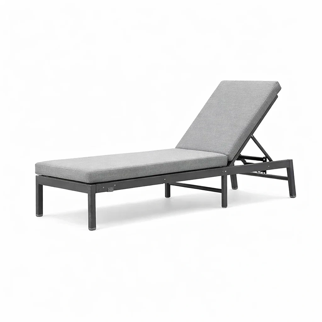 Chaise longue réglable en aluminium et tissu gris