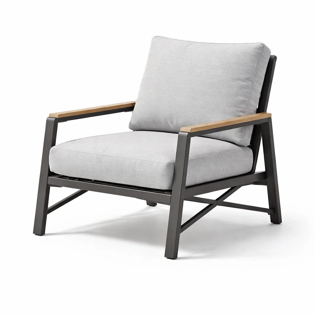 - Accoudoirs en bois (probablement teck ou acacia)