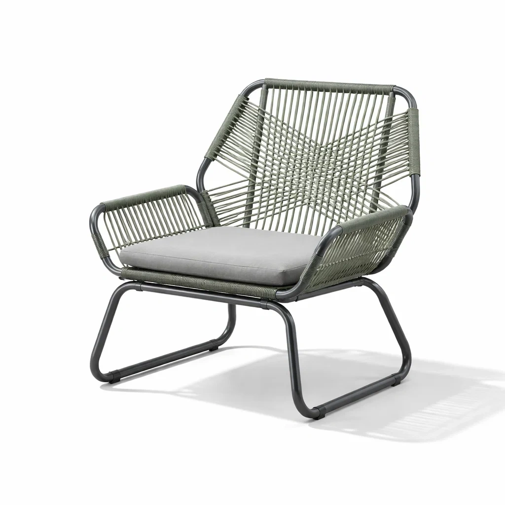 Fauteuil de détente extérieur en corde et acier avec coussin en polyester 75x70x80 cm